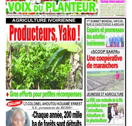 Depuis le lundi 5 juillet 2021, un nouveau titre de journal s’est affiché dans les kiosques à journaux ivoiriens. Il s’agit du mensuel dénommé: »Voix du planteur ». Paru en format tabloïd, ce mensuel de 12 pages dont le premier numéro commence dans ce mois de juillet 2021 est spécialisé en information typiquement agricole, des ressources animales et halieutiques et en environnement et en développement durable.